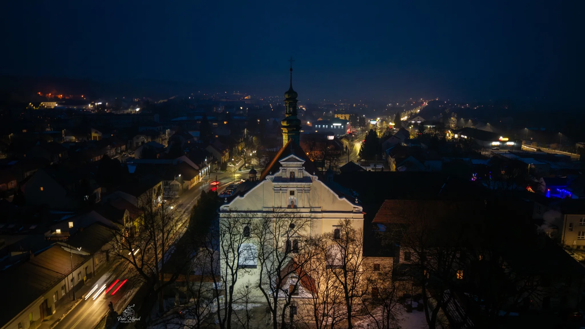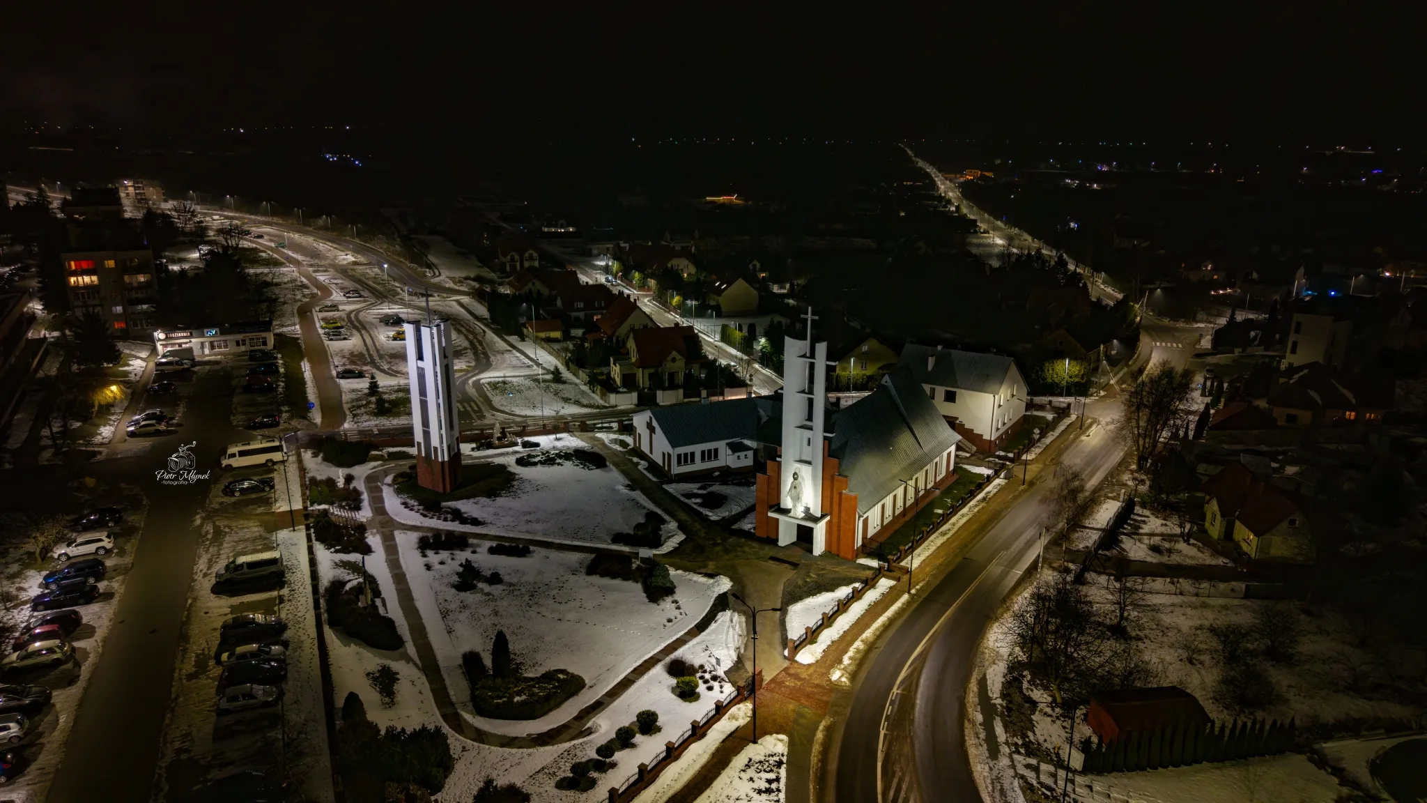 Pińczów i Busko-Zdrój nocą – miasta w świetle z drona