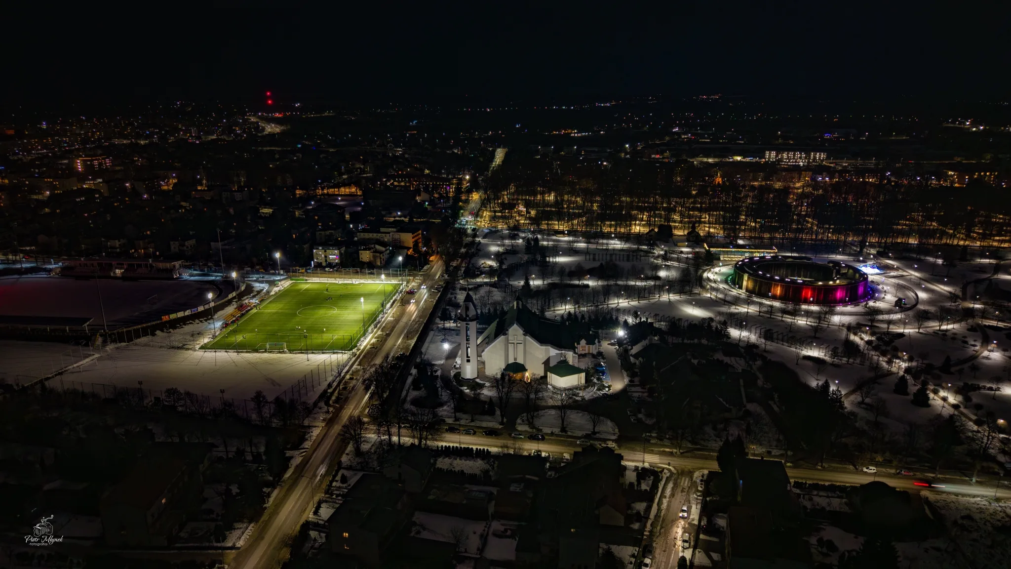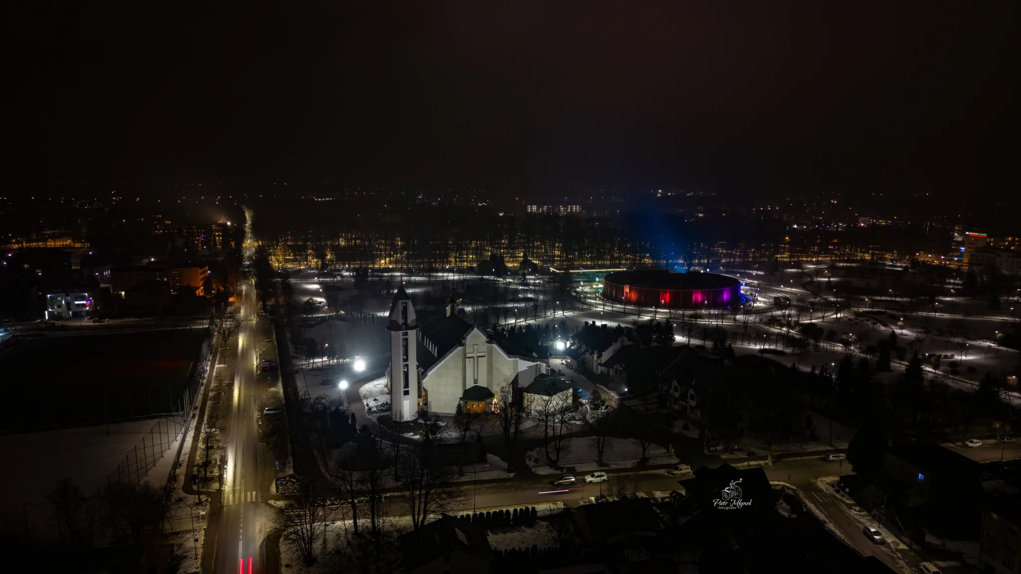 Noc potrafi całkowicie zmienić znane miejsca. Cisza, światła i perspektywa z lotu ptaka sprawiają, że miasta odsłaniają zupełnie inne oblicze. Tak właśnie wyglądają Pińczów i Busko-Zdrój na nocnych fotografiach wykonanych z drona.