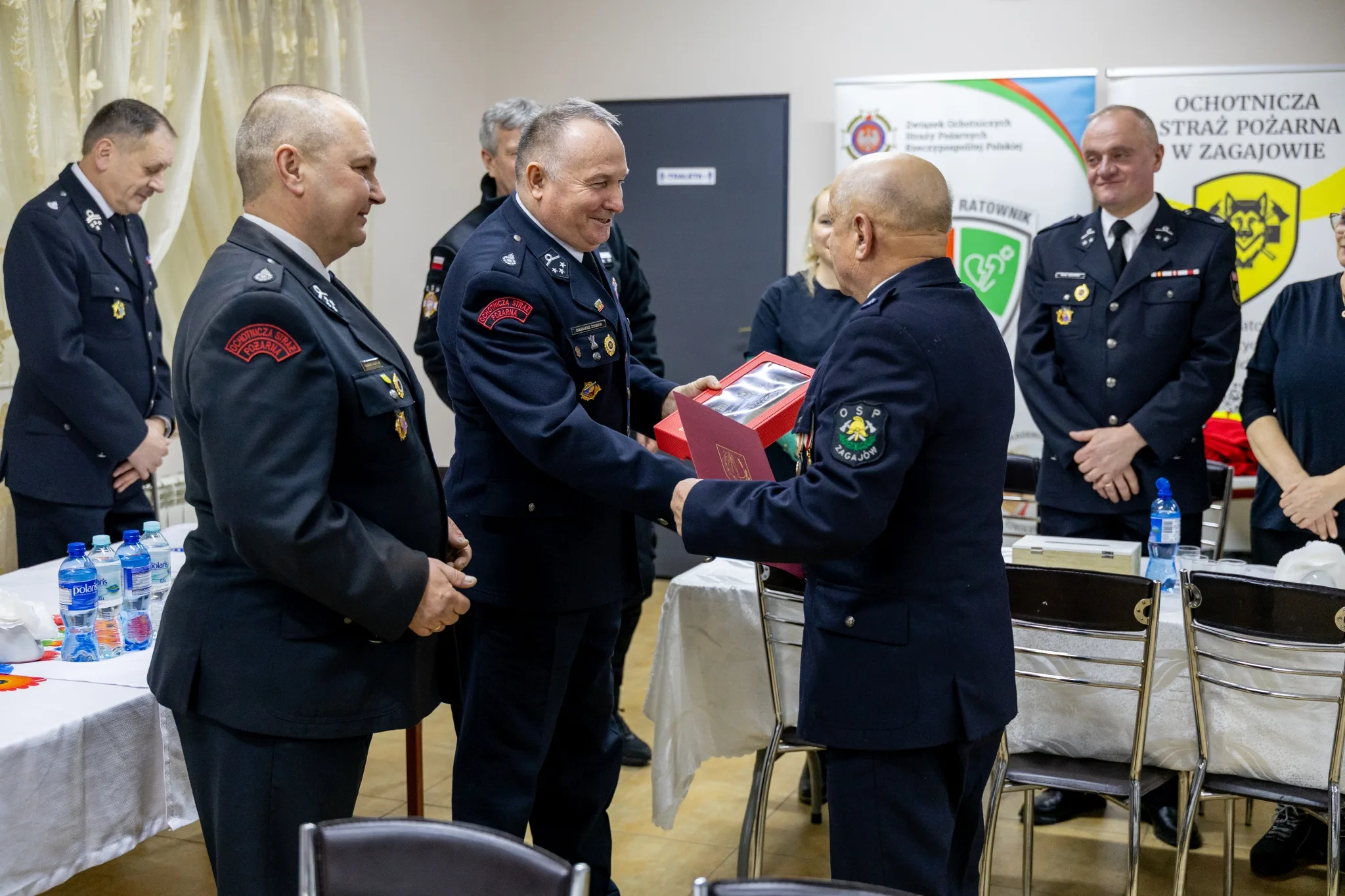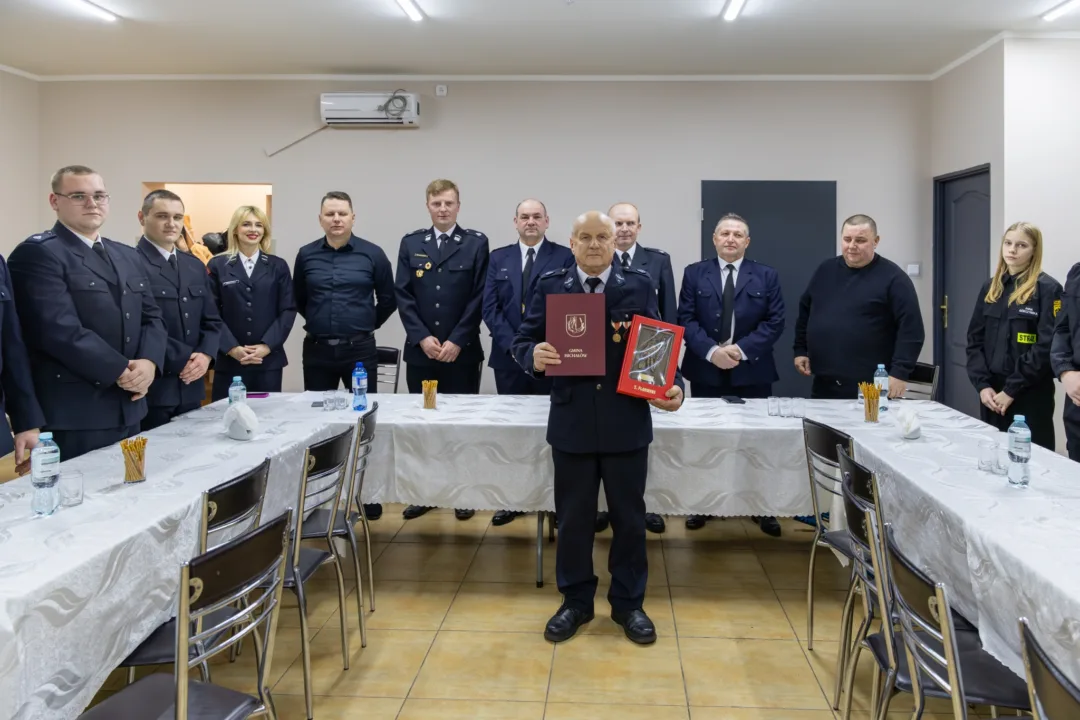 Szczególnie wzruszającym momentem zebrania było uhonorowanie druha Edwarda Strączkiewicza. Za wieloletnią, oddaną służbę na rzecz OSP Zagajów otrzymał on pamiątkową statuetkę oraz serdeczne podziękowania. Ciepłe słowa uznania i gratulacje przekazali także zaproszeni goście, podkreślając ogromny wkład druha Edwarda w rozwój jednostki.